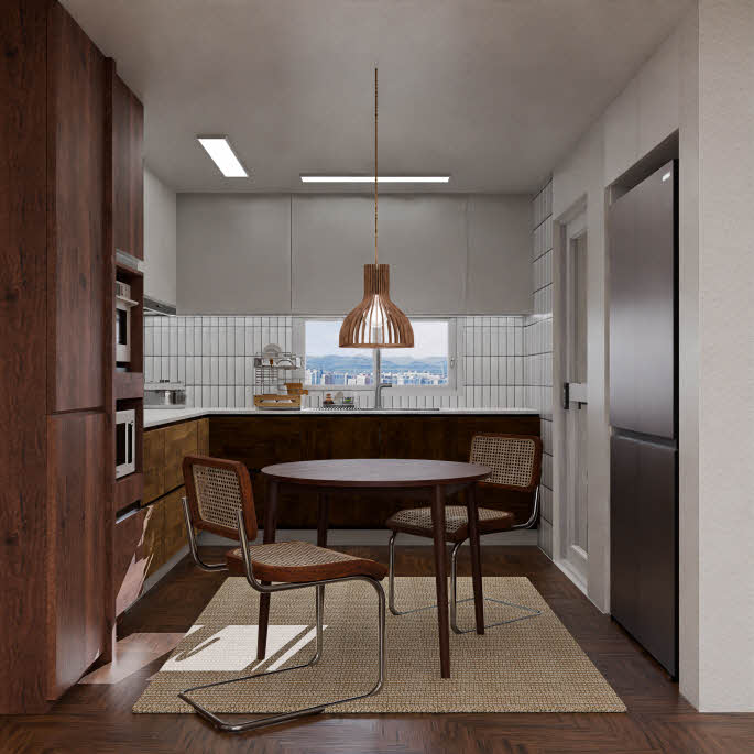 부엌은 내추럴한 디자인을 바탕으로 실용적이면서도 따뜻한 분위기를 연출하여, 소중한 시간을 함께 나누는 공간으로 만들었습니다. 가족이나 친구들과 함께 요리를 하고 식사를 즐기며, 더욱 돈독한 관계를 형성할 수 있도록 고려했습니다.